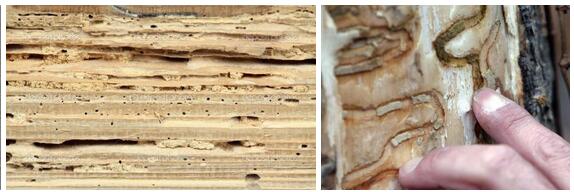 蠹蟲的危害性及破壞性雖不及白蟻,但它照樣能蛀穿堅硬的硬木地板和家俱、護墻板的外表,形成一個個空洞,排出大量的粉末。而在現代家居中,住戶往往是投入幾萬甚至幾十萬元進行裝修,一旦遭受蠹蟲危害,且得不到及時治理,蔓延的勢頭很難得到遏制,極大地影響住宅的觀賞性和使用性。嚴重時會把家居裝修蛀食得千瘡百孔。